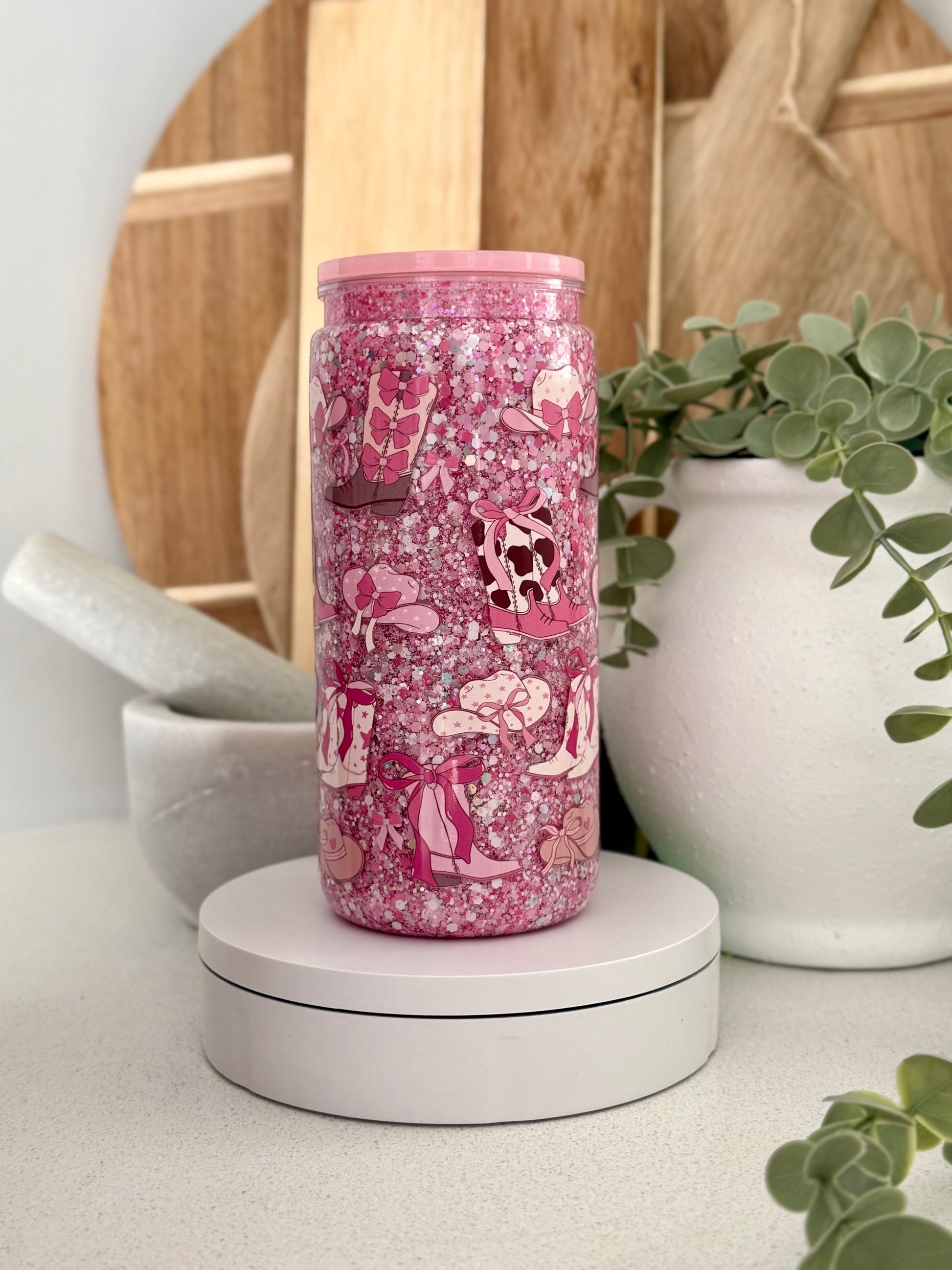 20oz Acrylic Snow globes with plastic lids and plastic straws